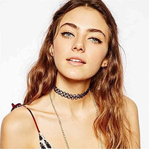 Yheakne Boho Tattoo Girocollo Collana Corto Nero Stretch Hennè Girocollo Collana Catena Gotico Punk Collana Anni '90 Collana Gioielli per Donne e Ragazze