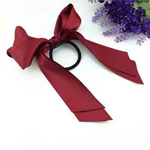 Yheakne - Elastico per capelli con fiocco in seta e raso, da donna e ragazza (rosso)