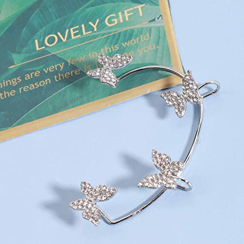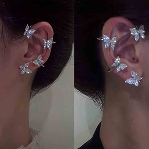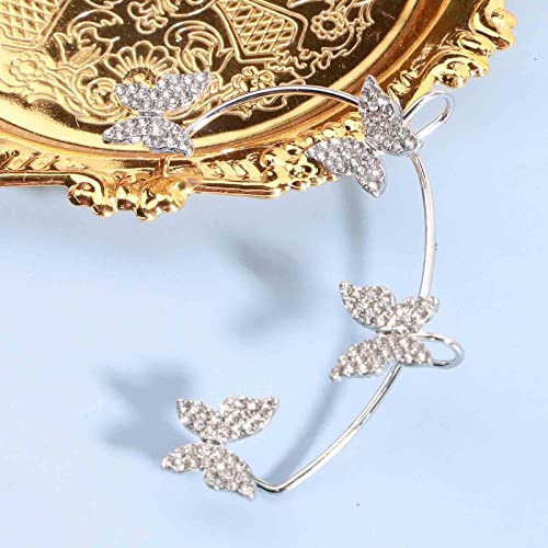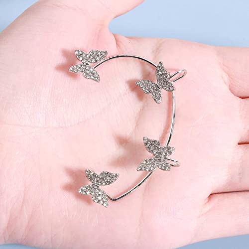 Yheakne Farfalla Orecchio Polsino Orecchini Argento Strass Farfalla Avvolgere Crawler Orecchini Cz Orecchini Senza Piercing Orecchini Gioielli Per Le Donne E Le Ragazze Orecchini Animali (argento)