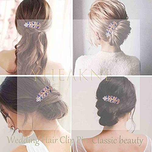 Yheakne Fermaglio luccicante per capelli da sposa con strass e cristalli blu, per capelli da sposa, accessorio per donne e ragazze (blu)