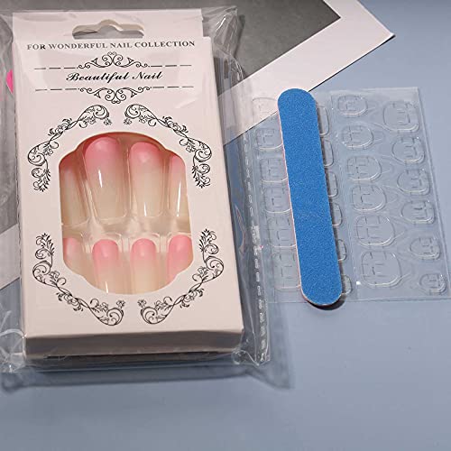 Yheakne - Unghie finte a ballerina, extra lunghe, lucide, a pressione, colore sfumato, copertura completa, unghie finte in acrilico, per french manicure, per donne e ragazze, 24 pezzi (stile A)