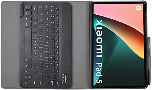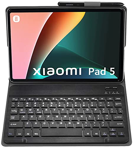 YHFZR Tastiera Custodia per Xiaomi Mi Pad 5/5 Pro 11 Pollice - QWERTY ultra sottile PU Custodia con supporto con cover tastiera rimovibile wireless Keyboard per Xiaomi Mi Pad 5/5 Pro 11 Pollice, Nero