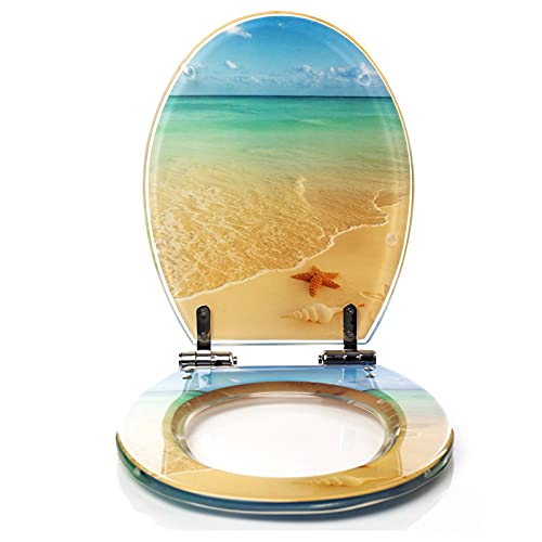 YHMT Tavoletta WC Colorata,Sedile WC con Chiusura Ammortizzata e Cerniere Regolabili a Sgancio Rapido,Copriwater Universale in Resina,Facile da Montare,Varie Fantasie (Color: Sandy Beach)