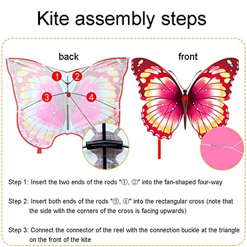 YHSW Aquilone a Farfalla per Bambini,Aquilone Rosa Farfalla,Facili da Far Volare e Montare,attività Giochi Estivi all'aperto in Beach Park (Linea aquiloni: 100 Metri)