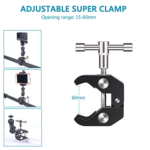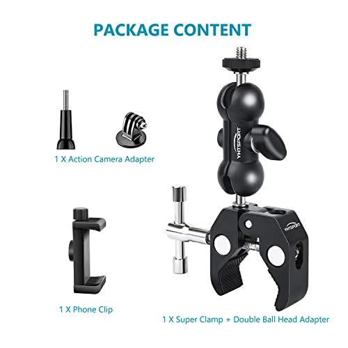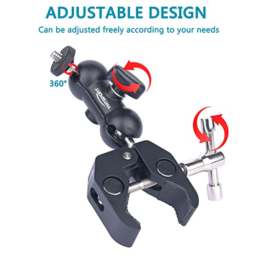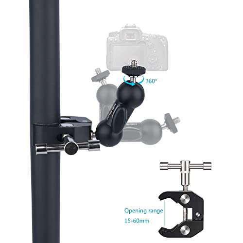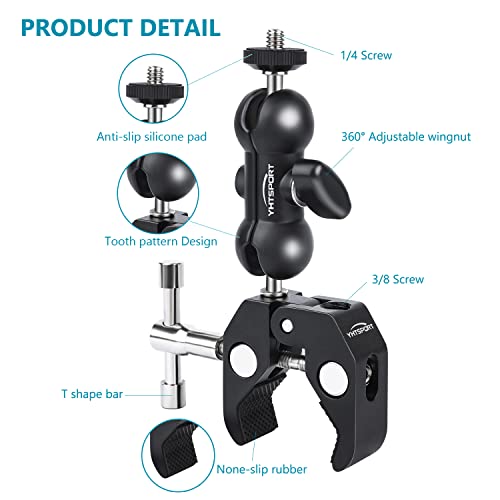 YHTSPORT Morsetto Super Clamp con Filettature da 1/4 e 3/8, Ballhead Magic Arm con Multifunzionale Super Clamp, Braccio a Sfera a 360°per Fotocamera, Action Cam, Monitor, Flash LED, Telefoni