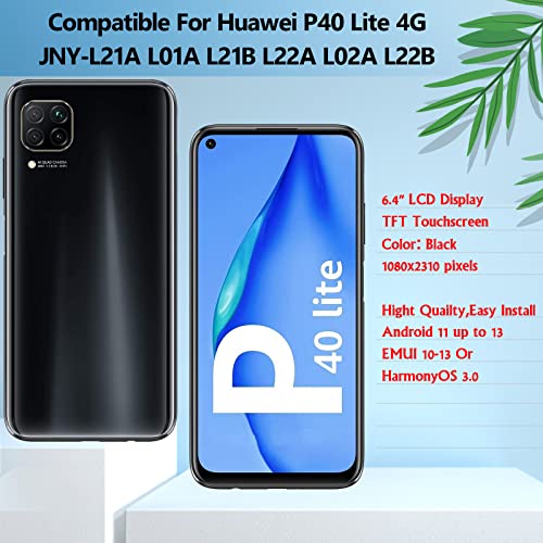 YHX-OU Display nero da 6,40" per Huawei P40 Lite 4G LCD Display Touch screen JNY-L21A L01A L21B L22A L02A L22B con attrezzi gratuiti + 1 pellicola protettiva