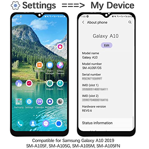【Kit schermo】: compatibile solo con Per Samsung Galaxy A10 2019 SM-A105F SM-A105G SM-A105FN/DS A105 SM-A105F/DS. Si prega di verificare la versione del telefono prima dell'acquisto. Ripara schermi danneggiati o bianchi, pixel morti o immagini di bassa qualità.