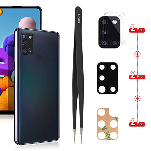 YHX-OU 6.50'' per Samsung Galaxy A21S A217 SM-A217F Lente Vetro Camera Posteriore [2 Pezzi] con pinzette + 2 Pezzi Camera Vetro temperato (Nero)