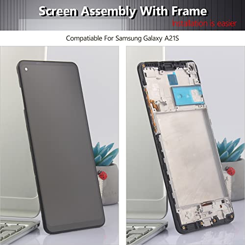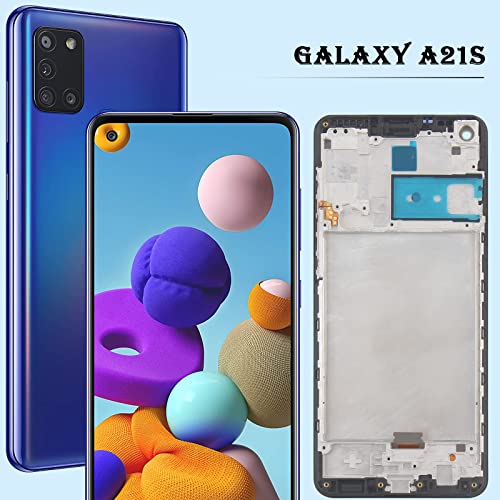 YHX-OU Schermo LCD per Samsung Galaxy A21S SM-A217F/DS Schermo Completo con Telaio LCD Display Set Digitalizzatore Touch Screen Ricambio + Strumento + 1 Pezzo Vetro Temperato (Nero+Telaio)