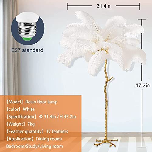 YHYYU Lampada da terra con piume di struzzo, moderna lampada a stelo a LED, dimmerabile, lampada da lettura di lusso, per soggiorno e camera da letto (Bianco, 120cm)