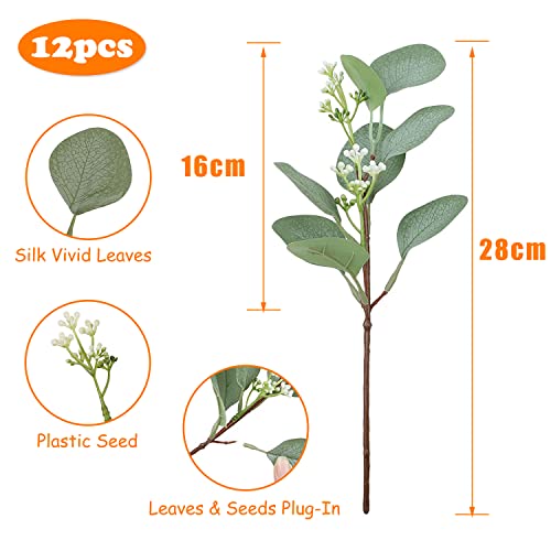 YHZMY YHMY-RZASZY-12P - 12 rami e foglie di eucalipto artificiali, in naturale di alta qualità, per decorazioni per bouquet di nozze, feste, ufficio, casa, ufficio, YHMY-RZASZY-12P