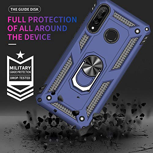 Yiakeng Cover Huawei P30 Lite + Pellicola Vetro Temperato, Custodia Slim Silicone Armour Bumper Antiurto Telefono Case con Kickstand per P30 Lite (Cover Huawei P30 Lite Blu)