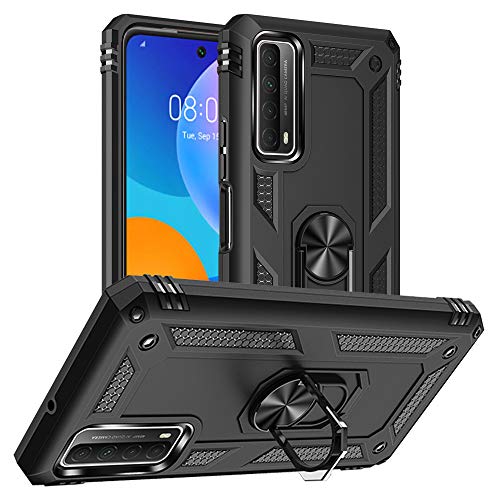Yiakeng Cover Huawei P Smart 2021, Doppio Strato Antiurto Protezione Silicone con Kickstand Rugged Custodia per Cover Huawei P Smart 2021 (Nero)