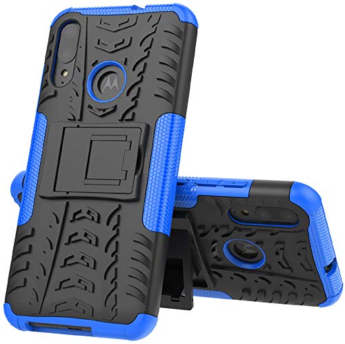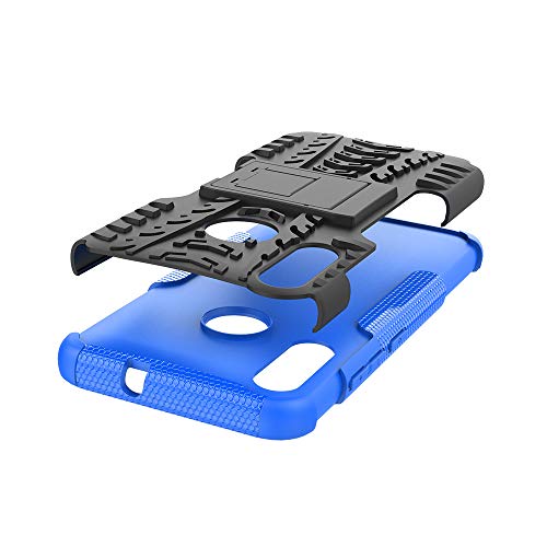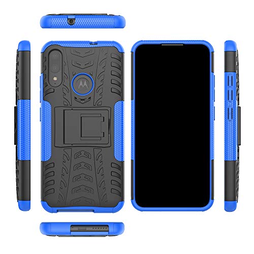 Yiakeng Cover Moto E6 Plus, Doppio Strato Antiurto Protezione Silicone con Kickstand Rugged Custodia per Cover Motorola Moto E6 Plus (Blu)