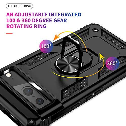 Yiakeng Cover Pixel 7, Cover Google Pixel 7, Custodia Slim Silicone Armour Bumper Antiurto Telefono Case con Kickstand per Cover Google Pixel 7 (Nero)