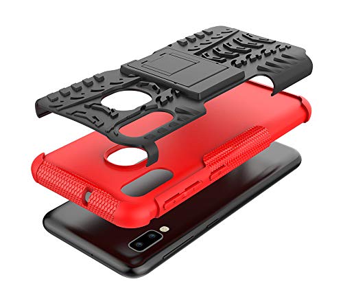 Yiakeng Samsung Galaxy A20e Cover, Doppio Strato Silicone Antiurto Far Cadere Protezione Con Kickstand Custodia per Samsung Galaxy A20E 5.8" (Rosso)