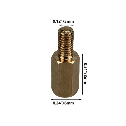 Yibuy 50 x Maschio Femmina PCB Filettatura Ottone Standoff Pilastri Distanziali M3 8mm+6mm