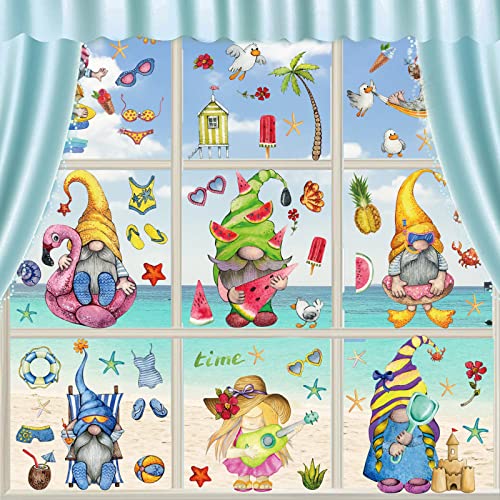 YICHEN Adesivi per Finestra Primavera Estate, 9 Fogli 82 Pezzi Vetrofanie per Finestre Gnomi Estate Adesivi Anti-Collisione PVC Decalcomanie Addobbi Sticker Decal Decorativi Statico Decorazioni