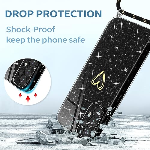 Yichxu Cover con Cordino per Samsung Galaxy A52S 5G, Custodia Glitter con Collana Tracolla, Motivo Cuore TPU Silicone Brillantini AntiGraffio Case, Laccio Collo Case per Samsung A52 4G/5G, Nero