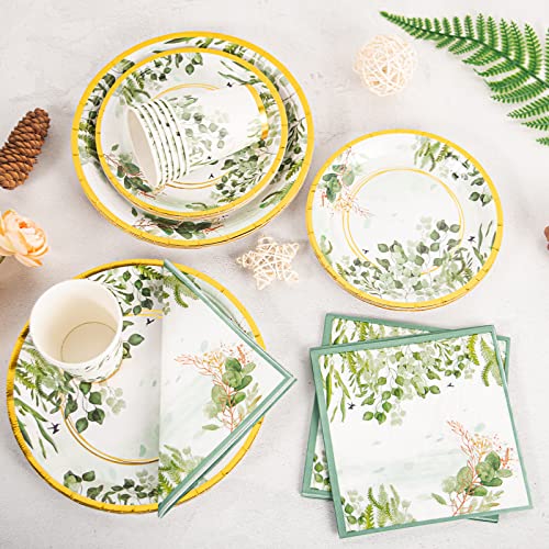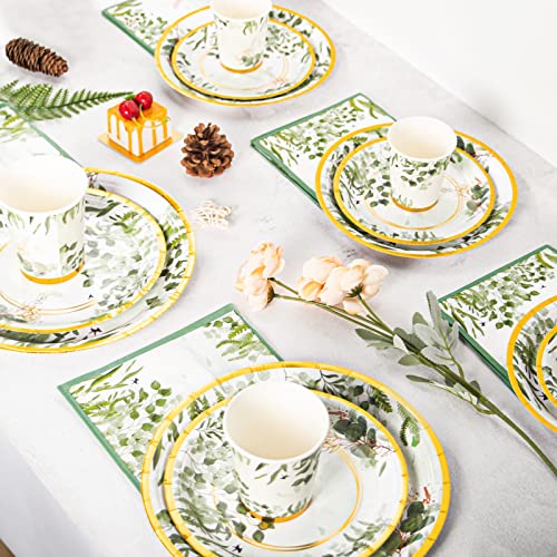 Yidaxing 96pcs Set di Stoviglie per Feste Verde Salvia, Foglie Piatti di Carta Verde Tazze Tovaglioli per Baby Shower Festa di Compleanno di Safari, Matrimonio, Ragazzi Ragazze, 24 Ospiti