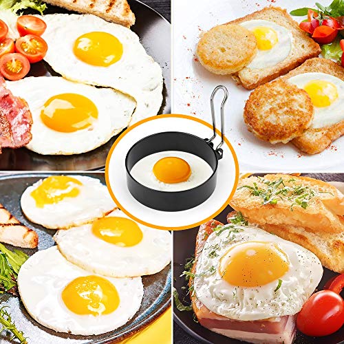 Yideng Anello di Uovo, Set di Anelli antiaderenti per Uova con Pennello per Olio, 4pcs 7.5cm/2.95inch Acciaio Inox frittata Stampo con Manici Pieghevoli per Muffin Uovo/frittelle/frittate e Altro.