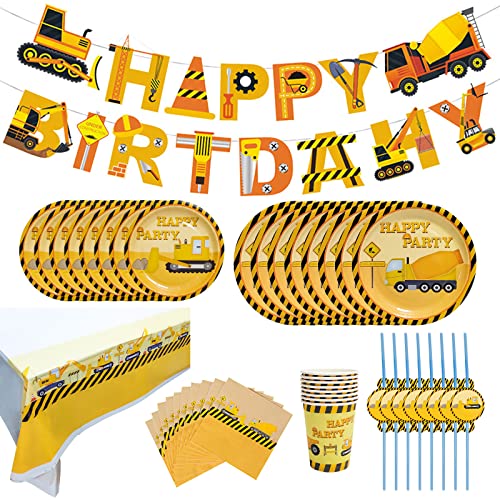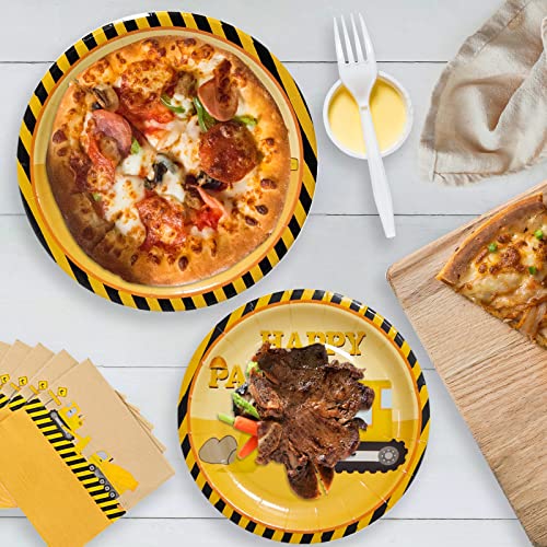 YIDOMDE 44 Pezzi 8 Ospiti Escavatore Stoviglie per Feste, Kit Party Tavola Cantieri, Escavatore Costruzione Decorazioni, Stoviglie USA e Getta per Feste, Kit Festa Compleanno per Ragazzi