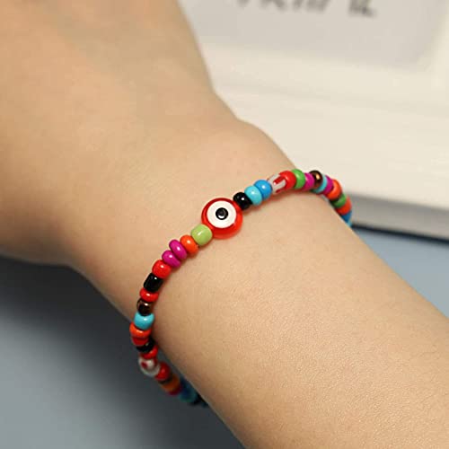 Yienate - Braccialetto elastico con occhi maligni, fatto a mano, con perline, stile bohémien, per donne e ragazze, colore rosso