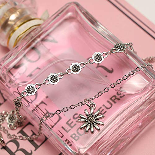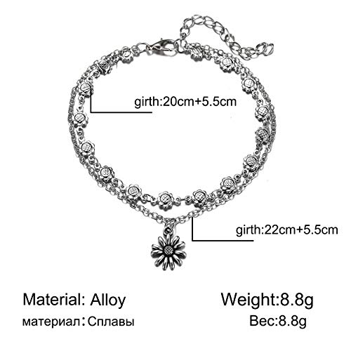 Yienate - Cavigliera con ciondolo a forma di margherita, in argento, con margherite e fiori, per donne e ragazze