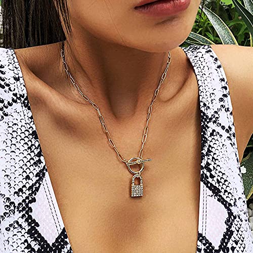 Yienate - Collana con lucchetto, stile punk, con chiusura a lucchetto, con strass intarsiati, catena con fibbia a fibbia per donne e ragazze (oro)
