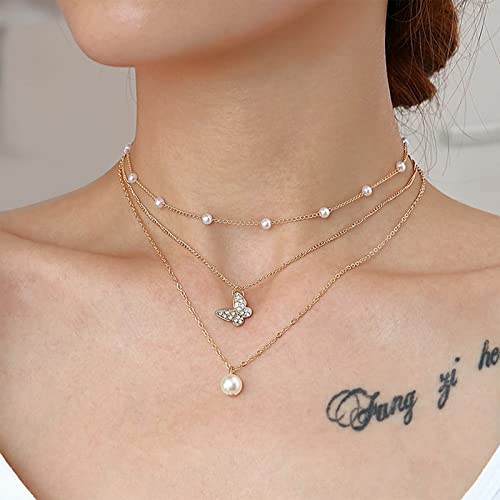 Yienate Multistrato Perla Farfalla Collana Girocollo Perla Pendente Farfalla Perla Girocollo Perla Tappo A Strati Fascino Collana Di Perle Gioielli Per Donne E Ragazze