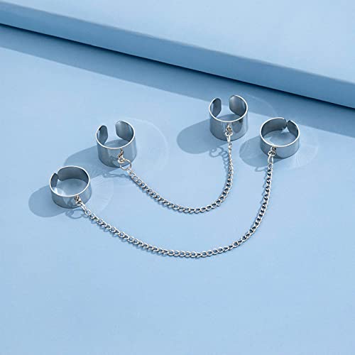 [Design unico]: Si compone di 4 anelli aperti e catene in lega, ogni anello è collegato da una catena, l'esperienza visiva fa sembrare le persone più in stile punk, stile hip-hop.