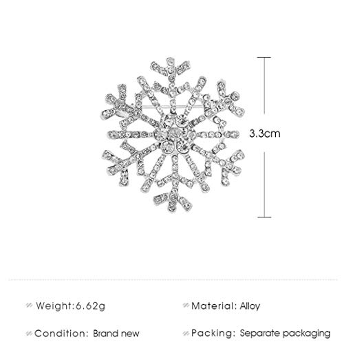 Yienate - Spilla a forma di fiocco di neve, con strass, per Natale, per uomini e donne, colore: argento