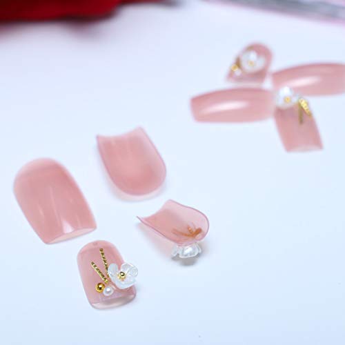 Yienate Unghie finte rosa Shell fiore lungo francese unghie copertura completa unghie unghie finte per donne e ragazze, 24 pezzi