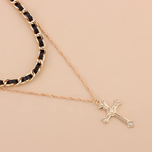 Yienate Vintage Oro Stratificato Collana Croce In Pelle Nera Girocollo Catena Croce Pendente Oro Multistrato Charm Collana Gioielli Per Donna E Ragazza