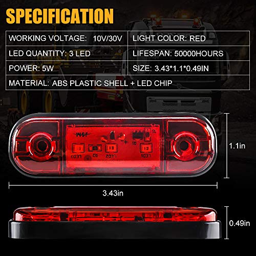 Yifengshun 4 pezzi LED Indicatore di posizione laterale Luce anteriore Posteriore Luci di posizione laterale 12V per camion Camper Van Camion RV Indicatori di direzione(Rosso)