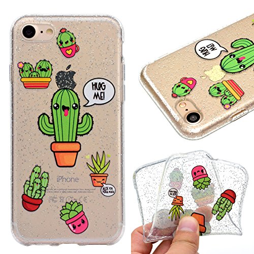 YIGA Cover per iPhone 7 / iPhone 8 Custodia Silicone Cactus Cover Cristallo Trasparente Guscio Silicone Morbido TPU Case Soft Shell Skin Protezione Custodia per Apple iPhone 7 / iPhone 8 (4.7")