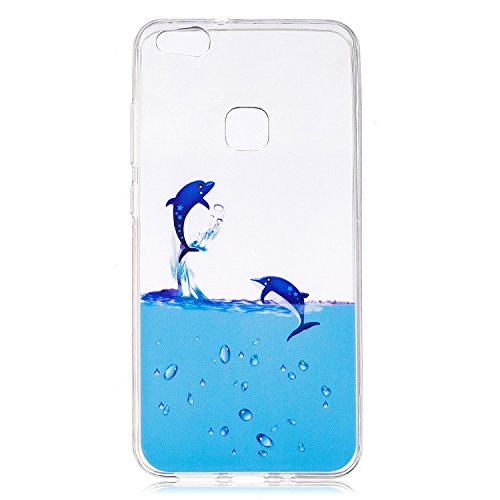YIGA per Huawei P10 Lite Cover Moda Oceano Delfino Cristallo Trasparente Cassa Silicone Morbido TPU Case Caso Shell Protettiva Custodia per Huawei P10 Lite