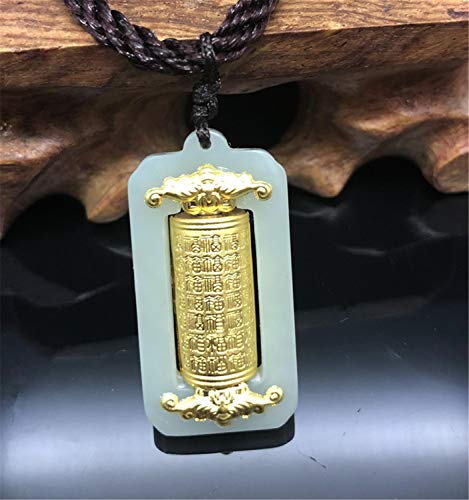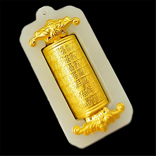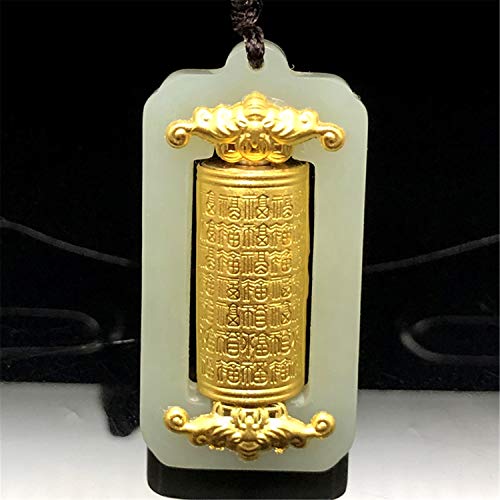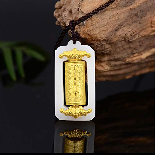 Yigedan - Ciondolo in oro 24 carati, con ciondolo a forma di scrittura, in giada bianca, con catena in argento