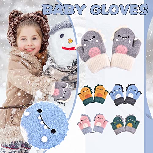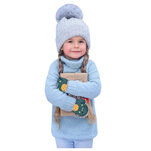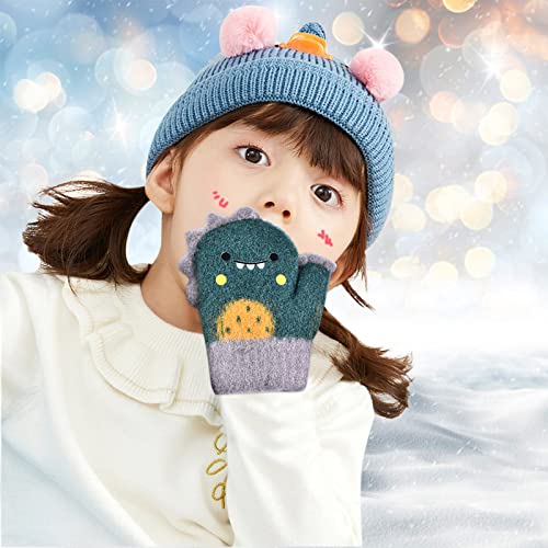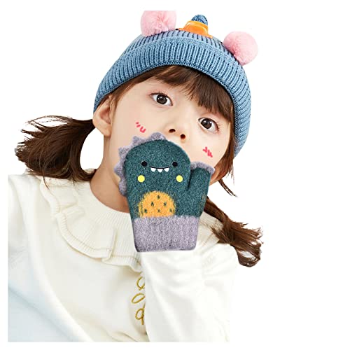 Yigghn Guanti a dita intere, per bambini, invernali, caldi, lavorati a maglia, con morbida fodera in peluche, guanti termici in cotone, elasticizzati, per dita intere, 0-4 anni, verde, Taglia Unica