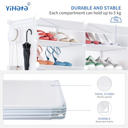 CABINET PER SCARPE MULTIUSO - YIHATA si vanta di offrire un armadietto per scarpe 2 x 6 ripiani, perfetto per organizzare le scarpe e altri articoli per la casa. Ogni ripiano misura 40cm x 15cm e può contenere fino a due paia di scarpe per adulti, per una capacità totale di 24 paia. L'armadietto è anche abbastanza versatile da poter immagazzinare vestiti, giocattoli, libri e accessori. Inoltre, viene fornito con una fila di ganci che è possibile installare sui lati dell'armadietto.
