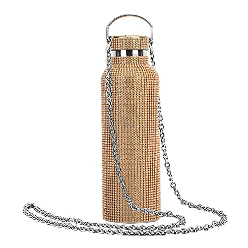 Yiifunglong - Bottiglia per acqua da 350 ml/500 ml/600 ml/750 ml, portatile, in acciaio INOX, con diamanti sintetici, regalo di compleanno, 350 ml, colore: Oro