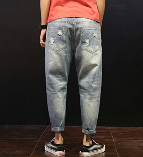 Yiiquan Jeans Uomo Strappati Lavato Pantaloni in Denim Uomini Straight Pantaloni Jeans Moda Stile 1 36