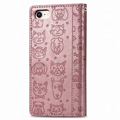 Yiizy Custodie per Apple iPhone 7 /iPhone 8 Cover, Cani e Gatti Stile PU Pelle Portafoglio Cover per iPhone 7 /iPhone 8 ProSilicone TPU Morbido Carte, Funzione Stand, Magnetica Protettivo (Oro Rosa)