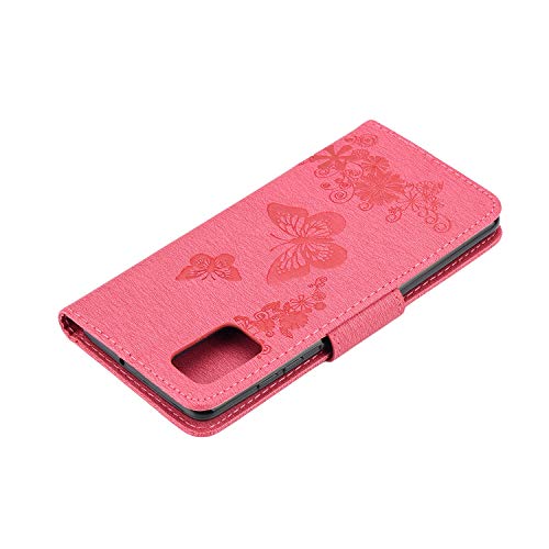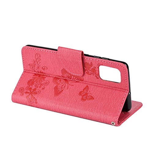 Yiizy Custodie per Samsung Galaxy A51 Cover, Farfalla Stile PU Pelle Portafoglio Cover per Galaxy A51 ProSilicone TPU Morbido Carte, Funzione Stand, Magnetica Protettivo (Rose Red)