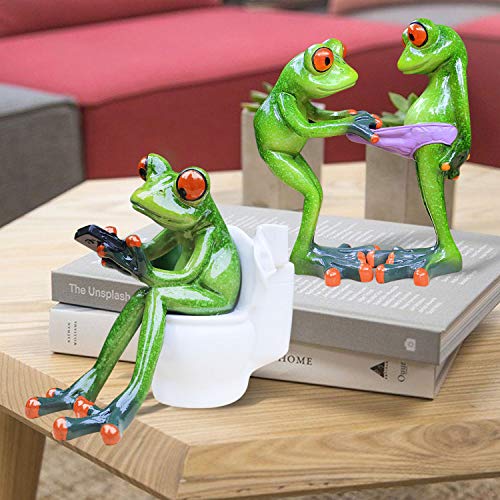 YIJIAOYUN Adorabile Rana Occhio Rosso Seduto sul WC Divertente Decorazione Figurine per la Casa Scrivania Decorazione