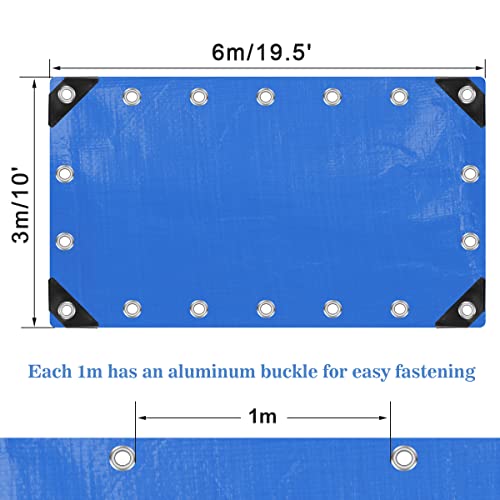 Telone 3 m x 6 m Materiale: il telone in plastica è realizzato in PE di alta qualità, rivestito con corda rinforzata su entrambi i bordi del telo per renderlo resistente e resistente agli strappi. E 4 occhielli angolari in alluminio in gomma lo rendono facile da tirare e maneggiare.