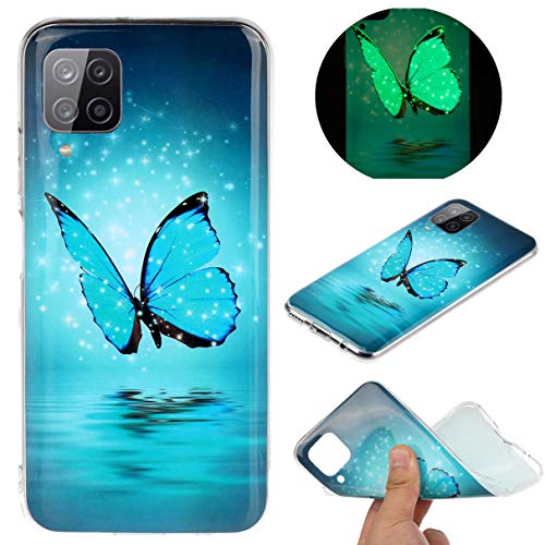 N+A YiKaDa - Cover Compatibile con Samsung Galaxy A12 + [2 Pack] Pellicola Protettiva in Vetro Temperato, Custodia Luminosa Morbida in Silicone TPU - Glitter Farfalla