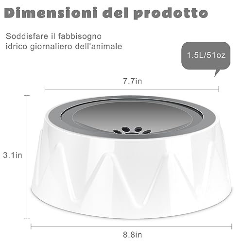 YIKANWEN Ciotola Acqua 1,5L Ciotola Anti-Gocciolamento per Acqua per Cani, Distributore d'Acqua Lento, Distributore d'Acqua Antiscivolo per Animali Domestici, Ciotola da 51oz per Cani e Gatti