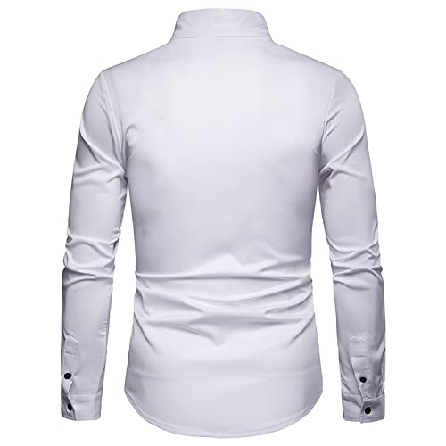 Yikesnt Camicia da Uomo d'Affari Primavera e Autunno Tinta Unita Slim Fit Comoda Cravatta con Risvolto Monopetto per pendolari Top L