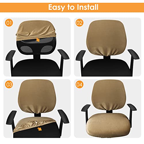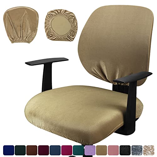 Yikko Coprisedia in velluto elasticizzato spandex 34,96 - 50,47 cm per ufficio, sedia girevole, protezione per casa, sala da pranzo, decorazione per feste di nozze, copertura per schienale (Khaki)